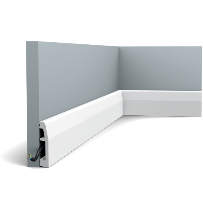 Этот минималистический плинтус с небольшим углом используется в современных и классических интерьерах